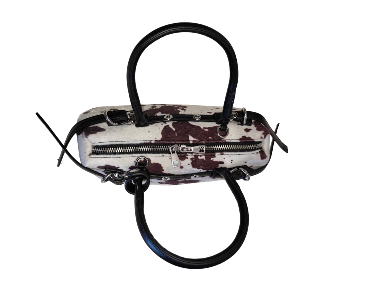 La borsa con manico Carolina sfida la tradizione con il suo tessuto simil cavallino muccato, compatto ma carico di personalità. Le piccole dimensioni non ingannano: la tracolla regolabile e la zip bidirezionale mettono al centro funzionalità e audacia. All’interno, due tasche, una con zip, custodiscono il necessario con stile. Un accessorio deciso, pensato per chi osa distinguersi senza compromessi.
