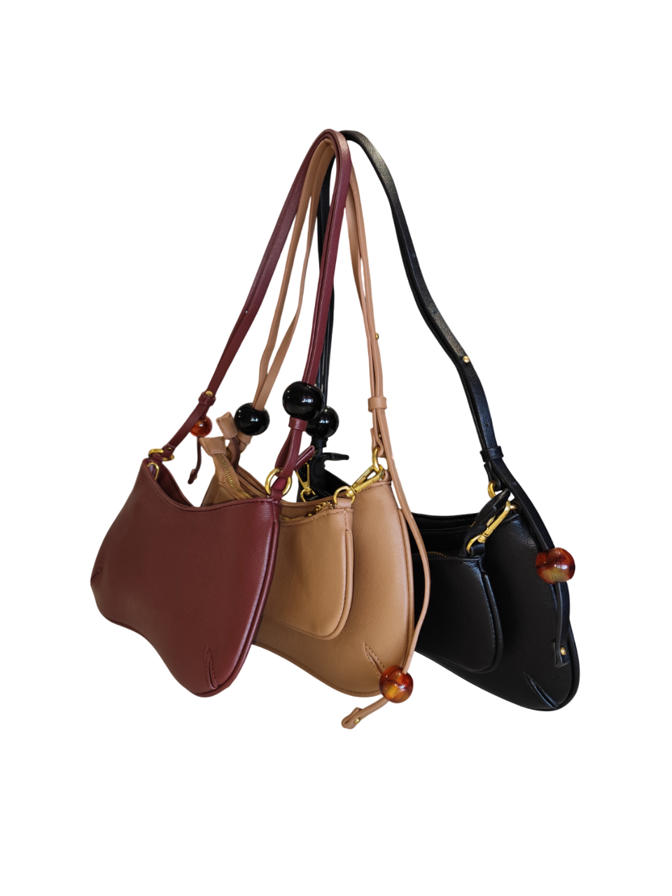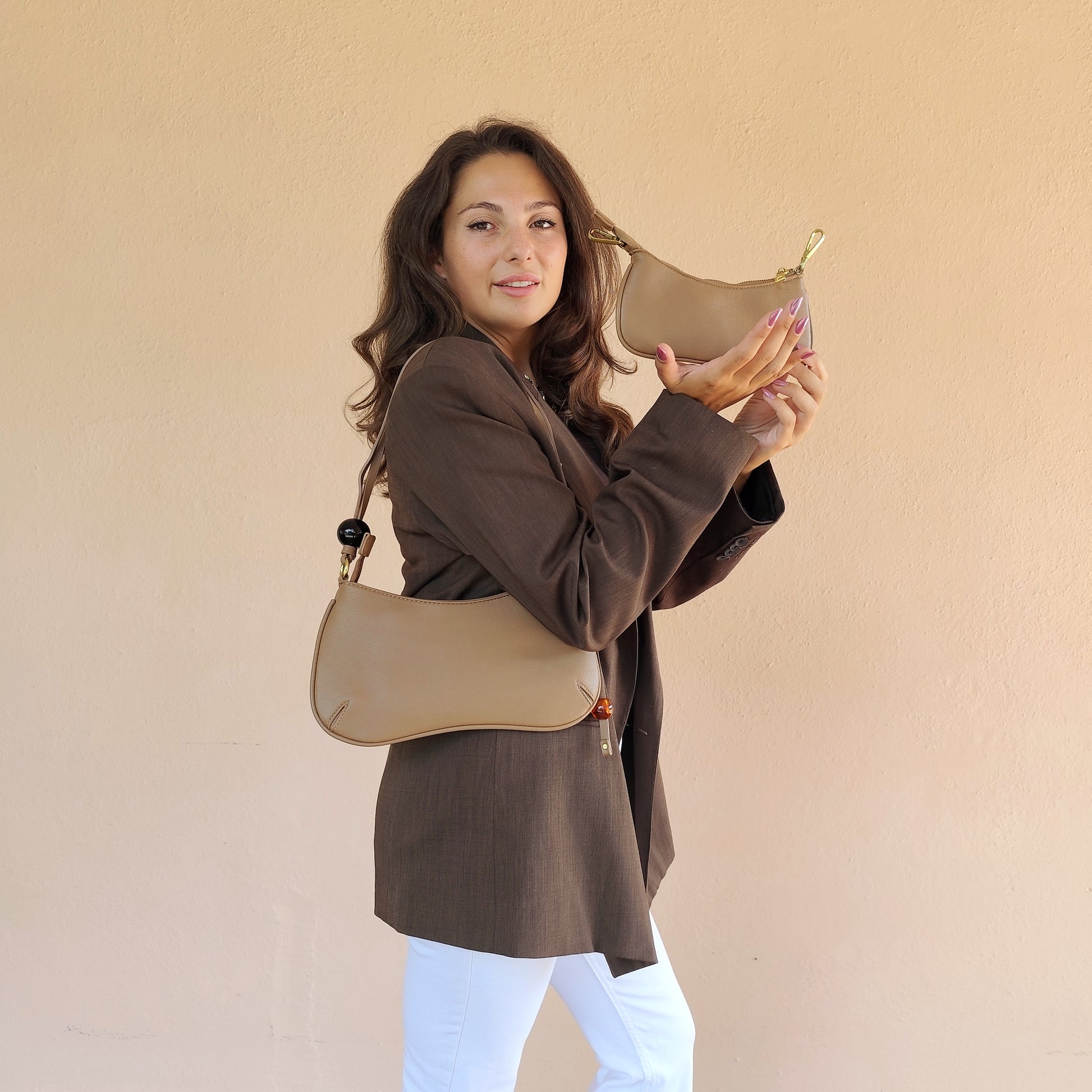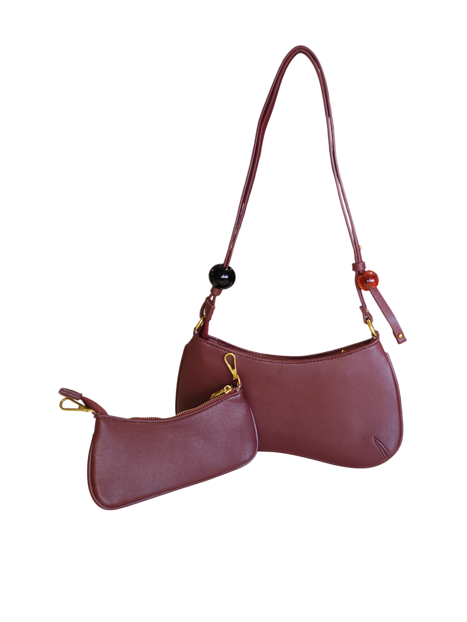 La borsa a spalla Twins offre una chiusura con cerniera e una tasca interna con zip per garantire sicurezza e praticità. Realizzata in similpelle, si distingue per eleganti particolari che ne esaltano il design raffinato. La borsa include una gemella più piccola, che può essere utilizzata autonomamente oppure unita alla borsa principale tramite ganci, offrendo versatilità e funzionalità per diverse esigenze quotidiane.