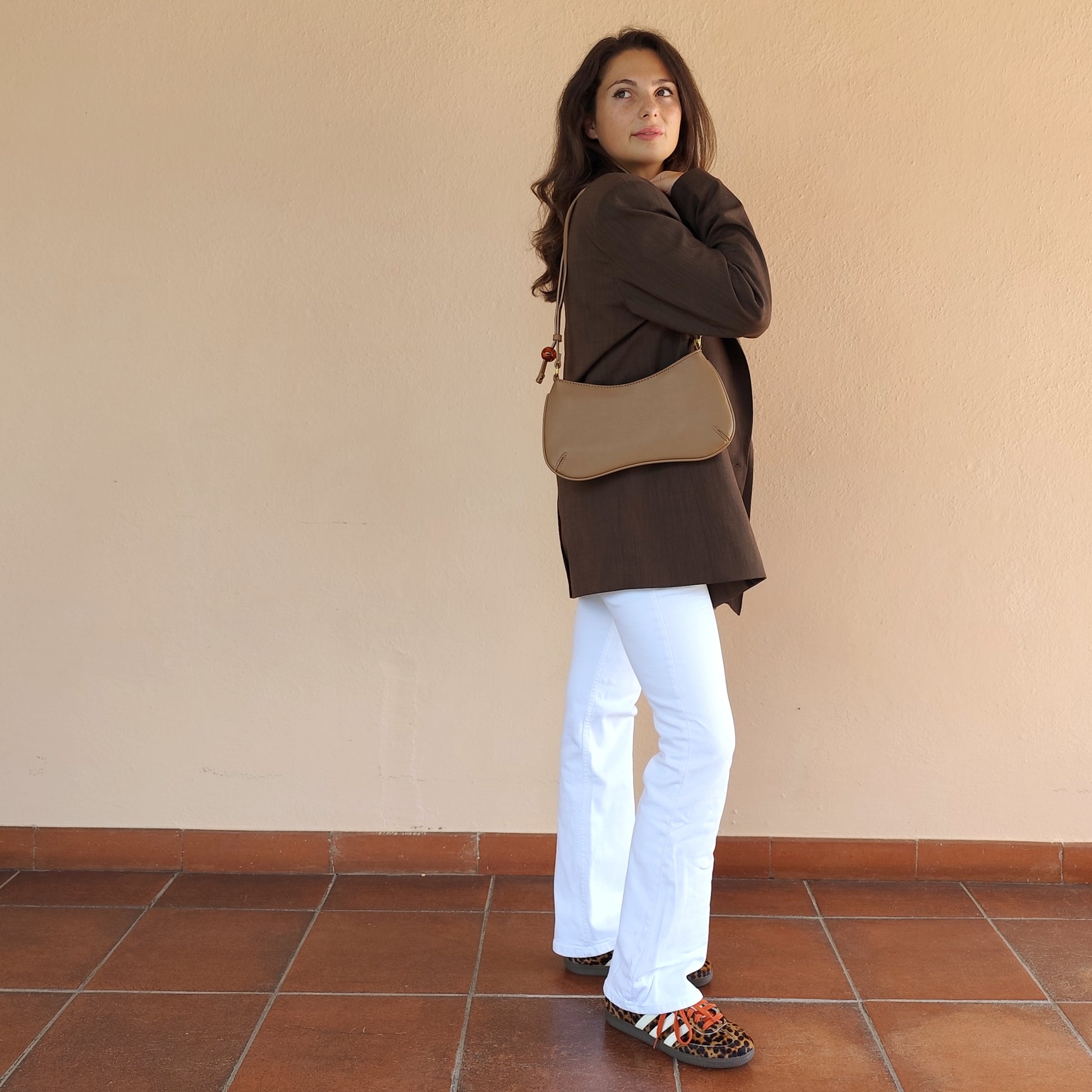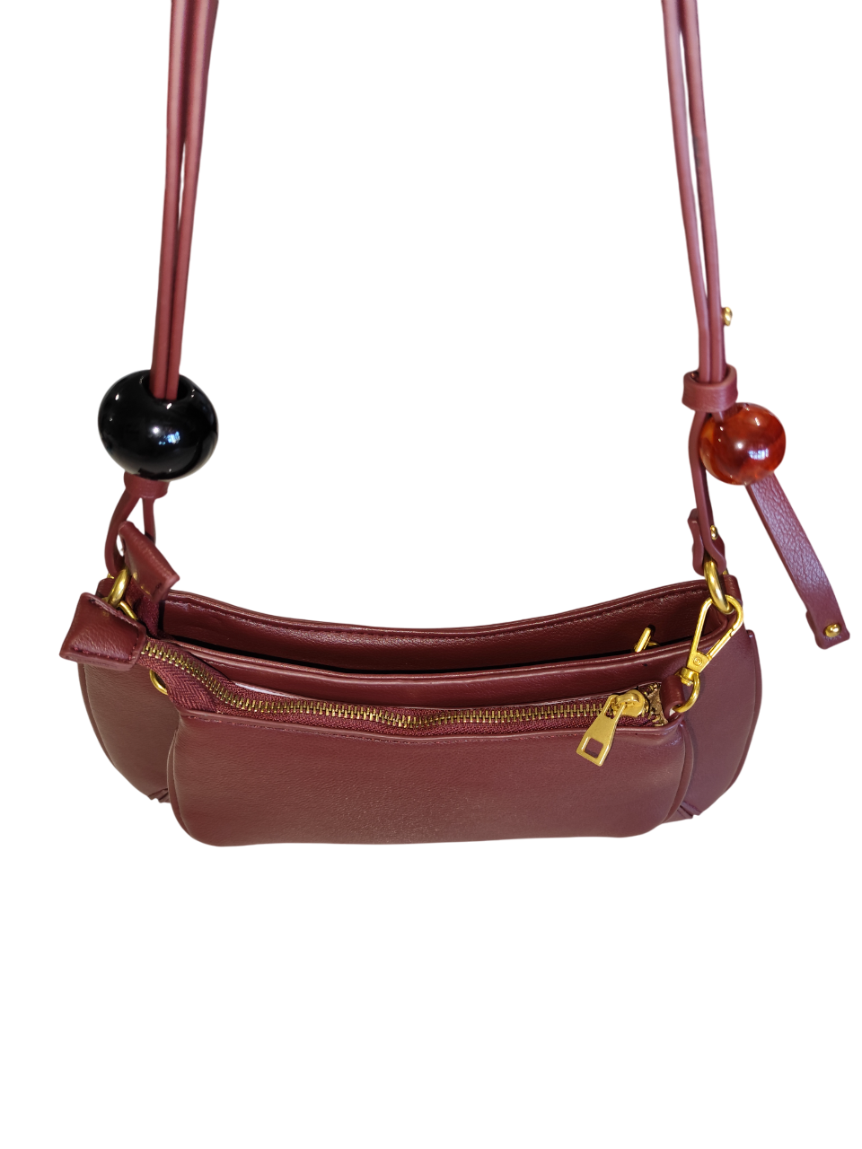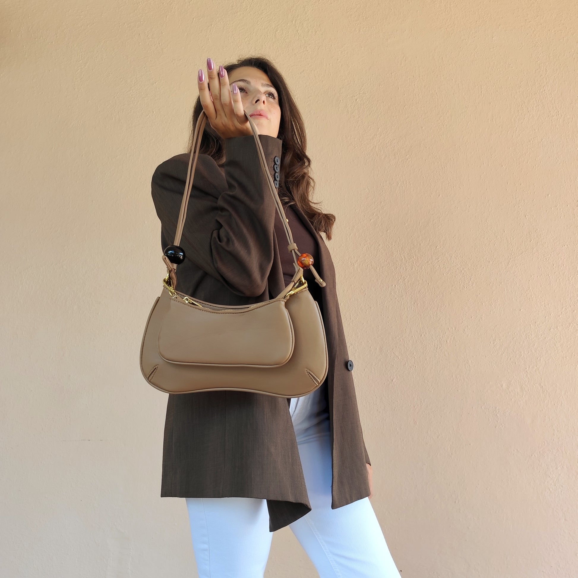 La borsa a spalla Twins offre una chiusura con cerniera e una tasca interna con zip per garantire sicurezza e praticità. Realizzata in similpelle, si distingue per eleganti particolari che ne esaltano il design raffinato. La borsa include una gemella più piccola, che può essere utilizzata autonomamente oppure unita alla borsa principale tramite ganci, offrendo versatilità e funzionalità per diverse esigenze quotidiane.