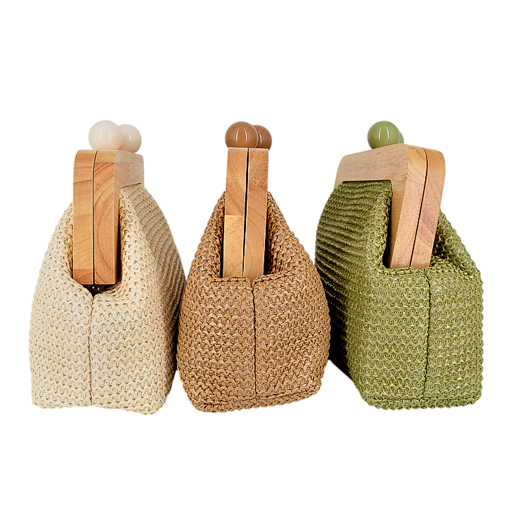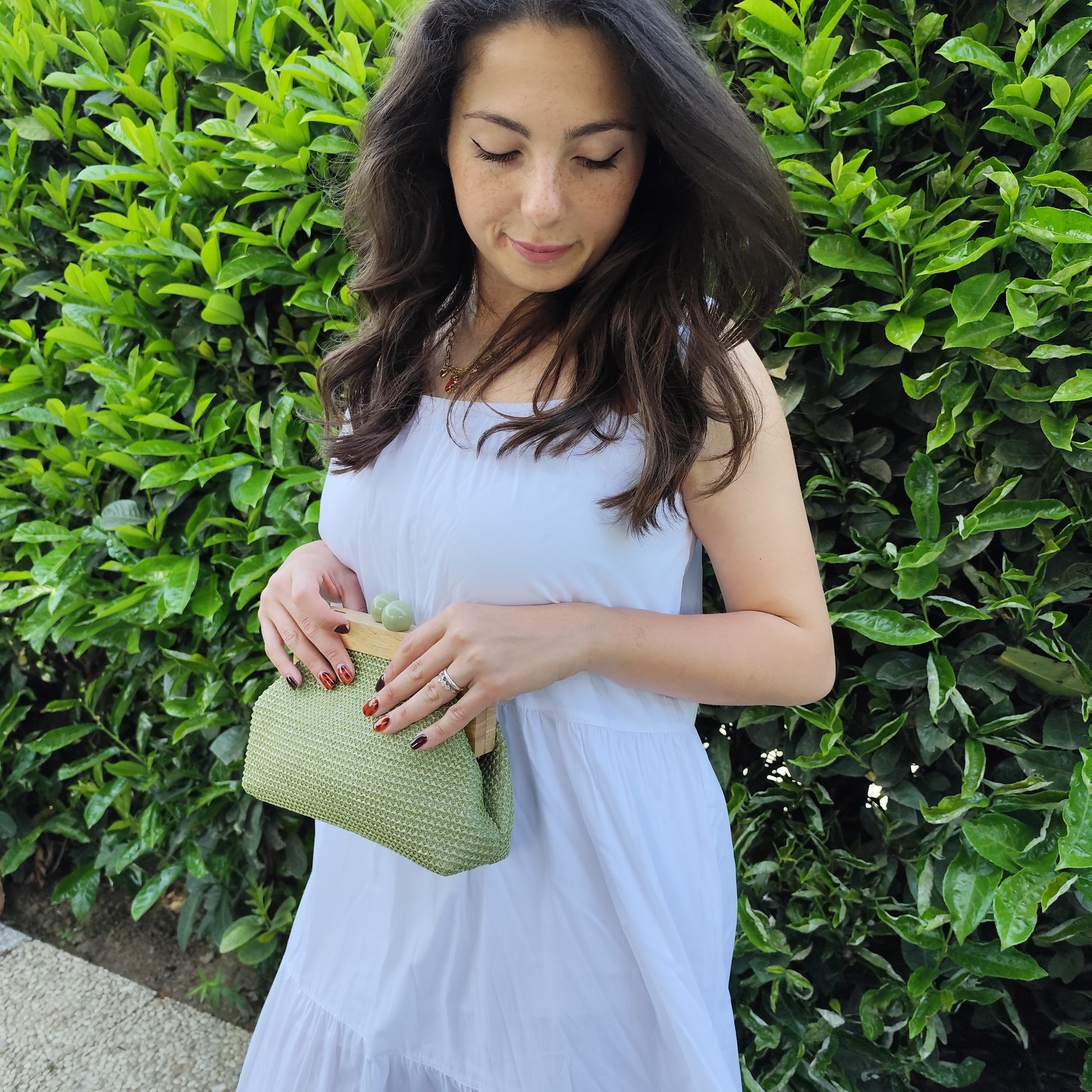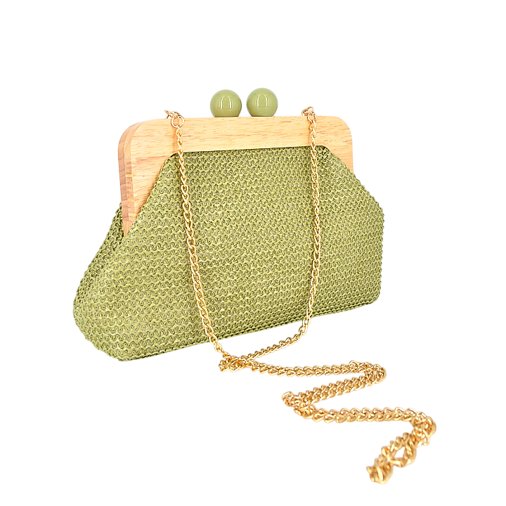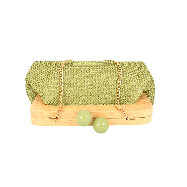 La nostra Clutch Uncinetto è realizzata in legno e decorata con un tessuto dall'effetto ricamato. La chiusura a scatto garantisce sicurezza, mentre la catenina removibile offre versatilità. Grazie ai ganci a scomparsa, puoi trasformare facilmente questa Clutch in una pratica tracolla.