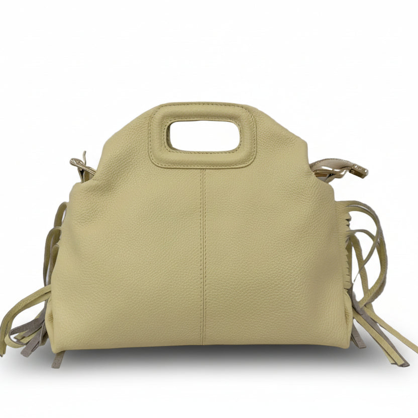 Scopri una borsa che unisce carattere e artigianalità: questa borsa a mano con frange è realizzata in vera pelle Made in Italy, sinonimo di qualità, resistenza e stile senza tempo.