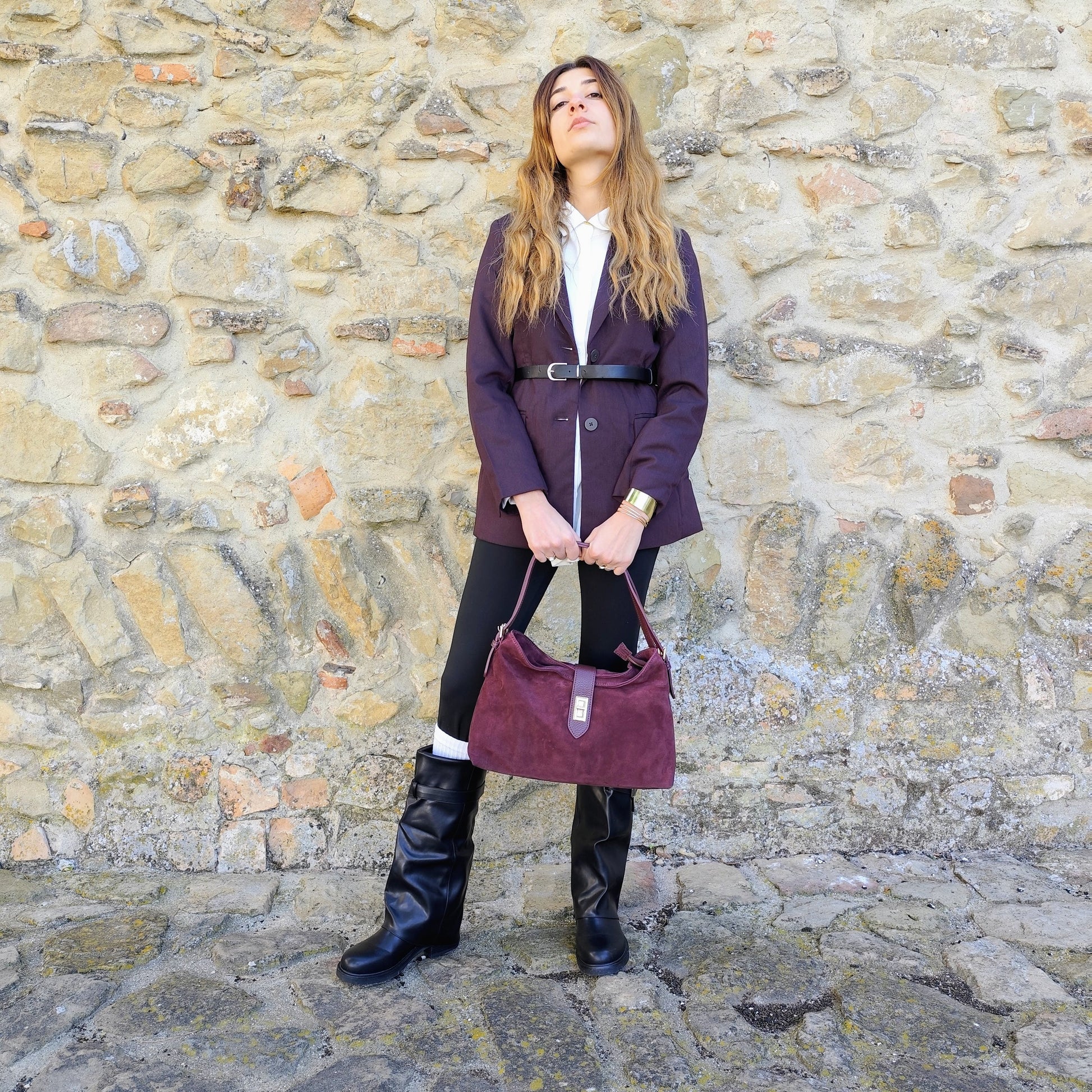 La borsa a spalla Suede Florence unisce eleganza e praticità grazie alla morbida pelle scamosciata autentica. Il doppio manico consente di portarla comodamente a spalla, mentre la chiusura in metallo dorato aggiunge un tocco raffinato e moderno al tuo look. Perfetta per accompagnarti con stile nelle tue giornate più impegnate.