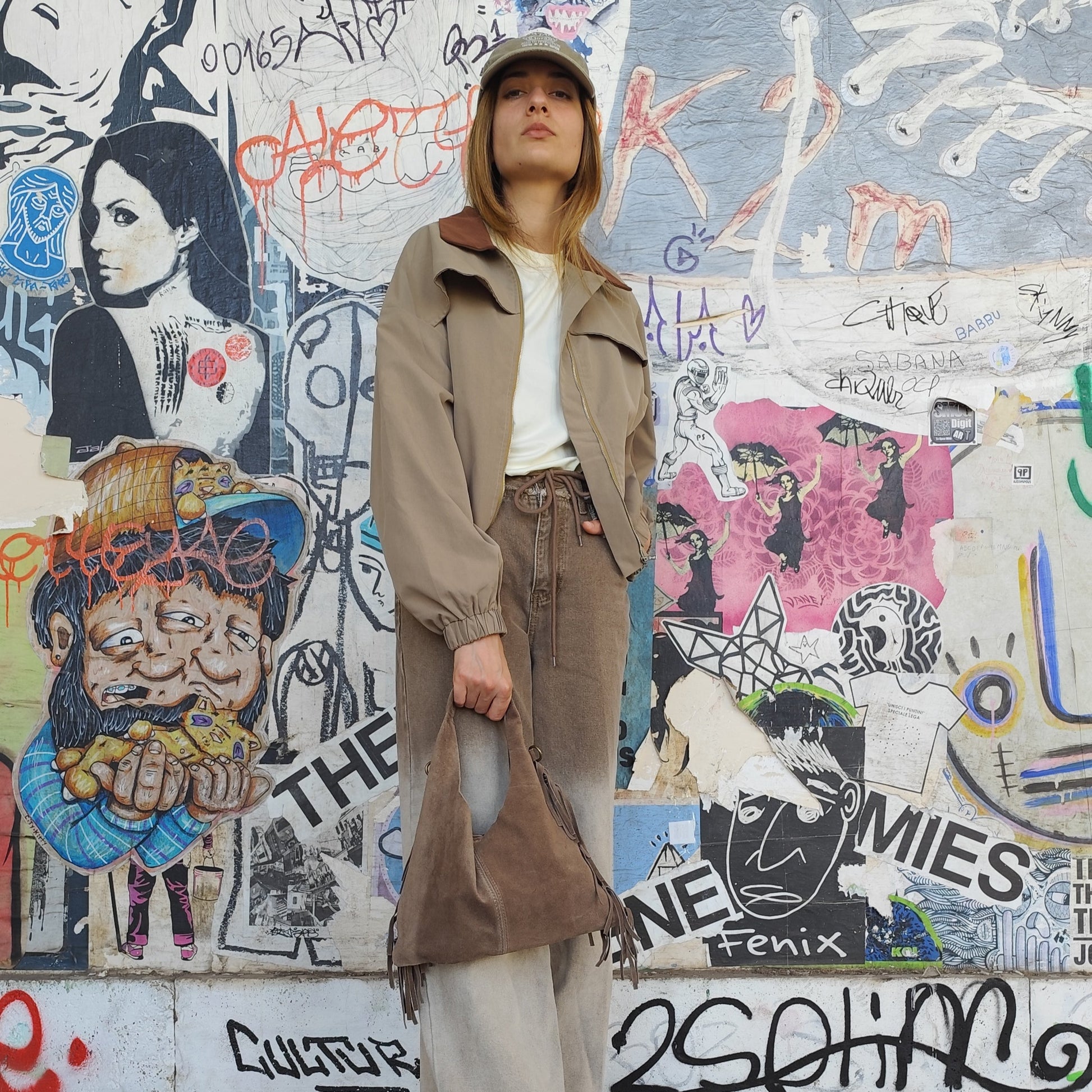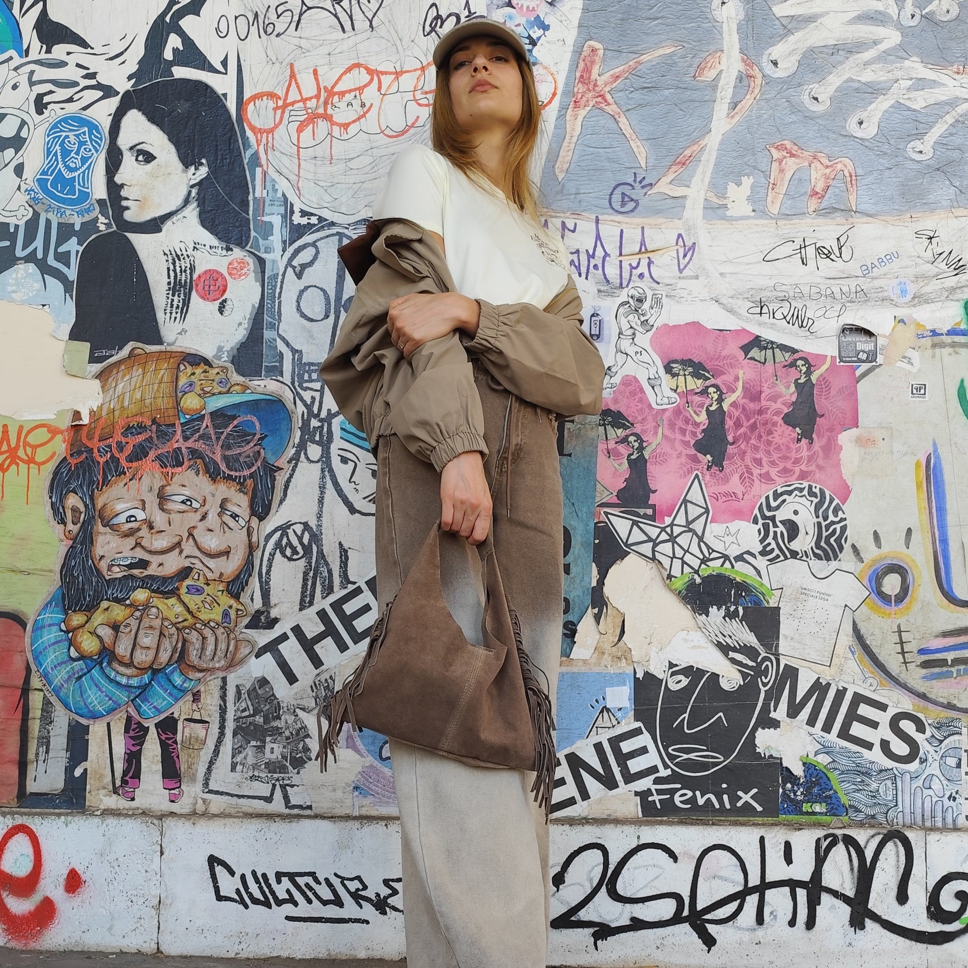 La Borsa a spalla Suede Fringe in vera pelle scamosciata è l’accessorio perfetto per valorizzare ogni outfit. Le eleganti frange aggiungono movimento e charme, mentre la tracolla removibile ti permette di portarla come preferisci. La pratica chiusura a calamita garantisce sicurezza senza rinunciare alla semplicità. Con il suede che torna protagonista della moda, questa borsa è la scelta ideale per chi vuole uno stile contemporaneo e raffinato.