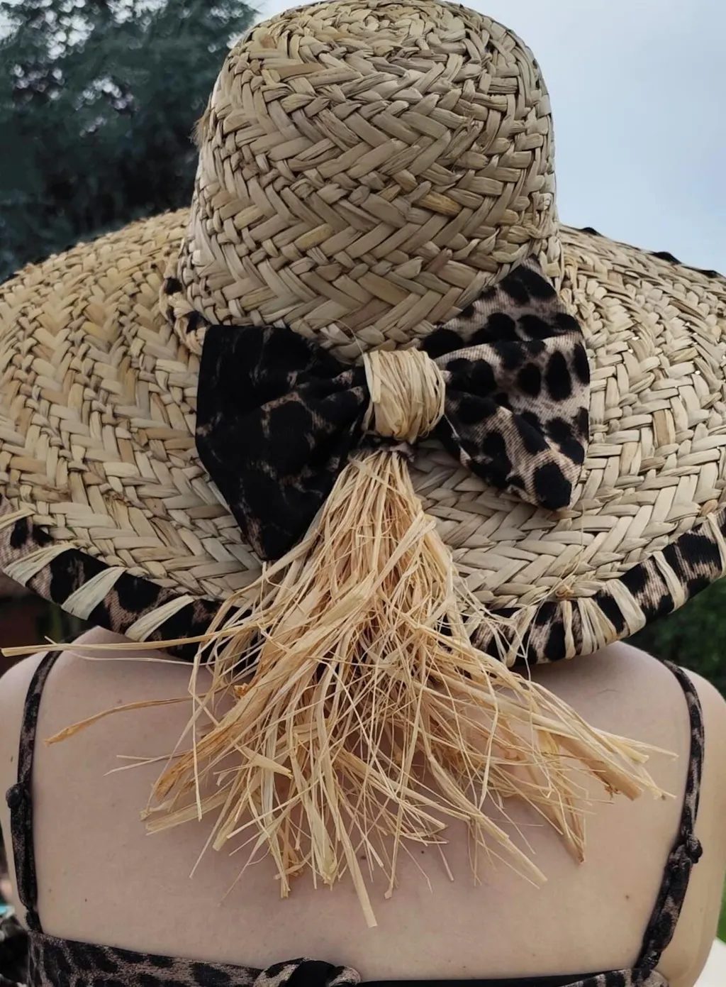 Entra nell'estate con stile con il Cappello Leopard. Realizzato in paglia intrecciata, presenta un elegante ricamo leopardato e un fiocco che lo rende unico. Proteggi il tuo viso dai raggi del sole e dona un tocco di fascino al tuo outfit da mare.