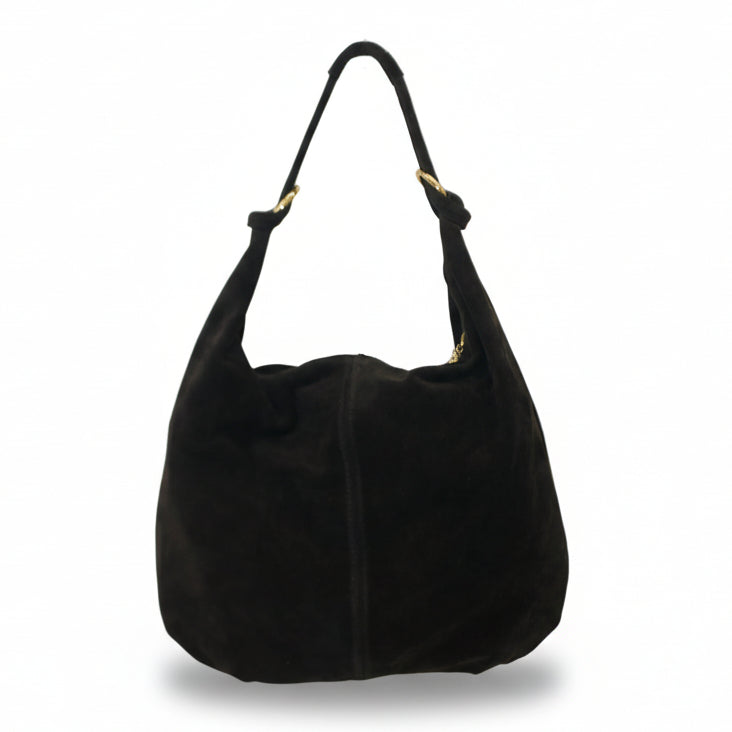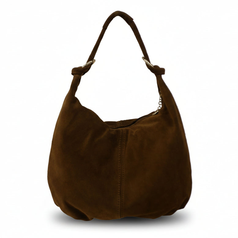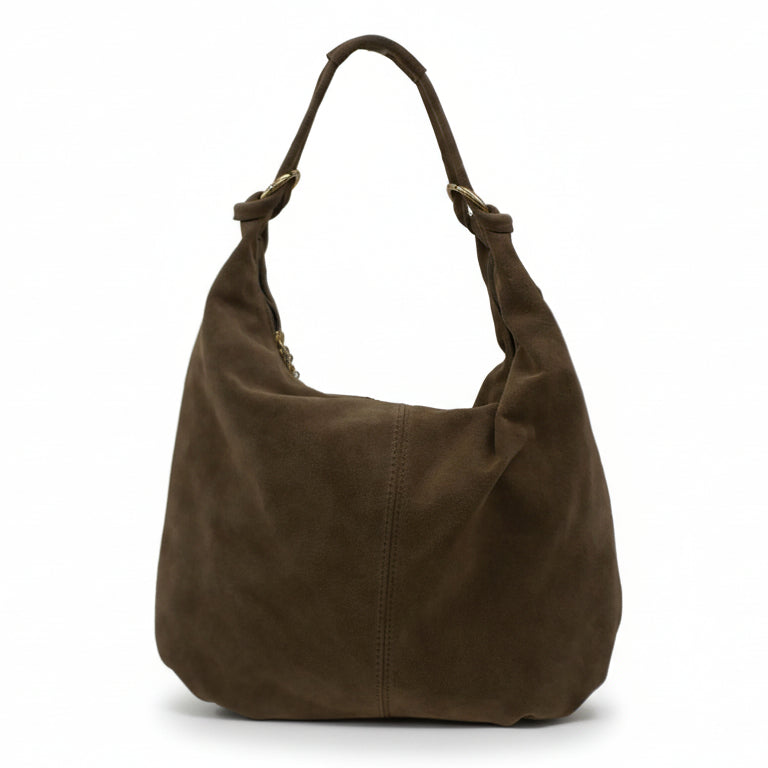 La borsa a spalla Tierra in morbido suede unisce stile e versatilità. La sua forma hobo elegante permette di indossarla comodamente a spalla, a tracolla o a mano ripiegata. Interno foderato e con taschino, Disponibile nelle tonalità più cool dell’autunno, aggiunge un tocco di classe e si adatta a ogni look quotidiano con facilità. Scopri il piacere di un accessorio che saprà valorizzare ogni tuo outfit.