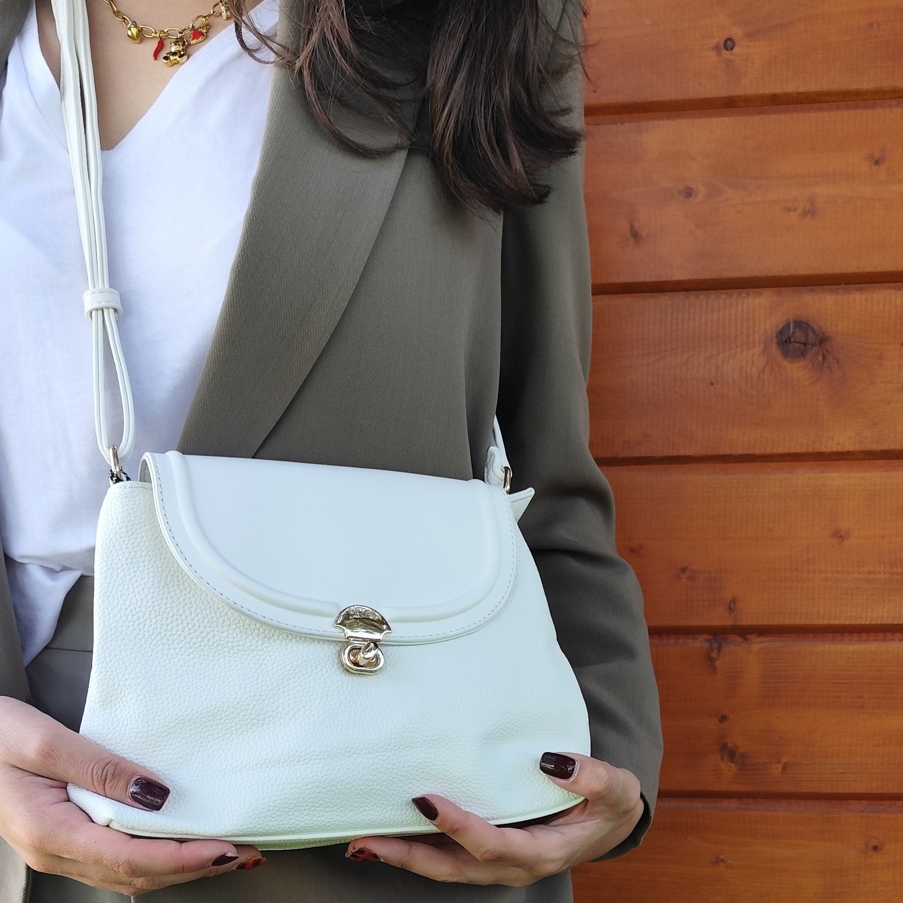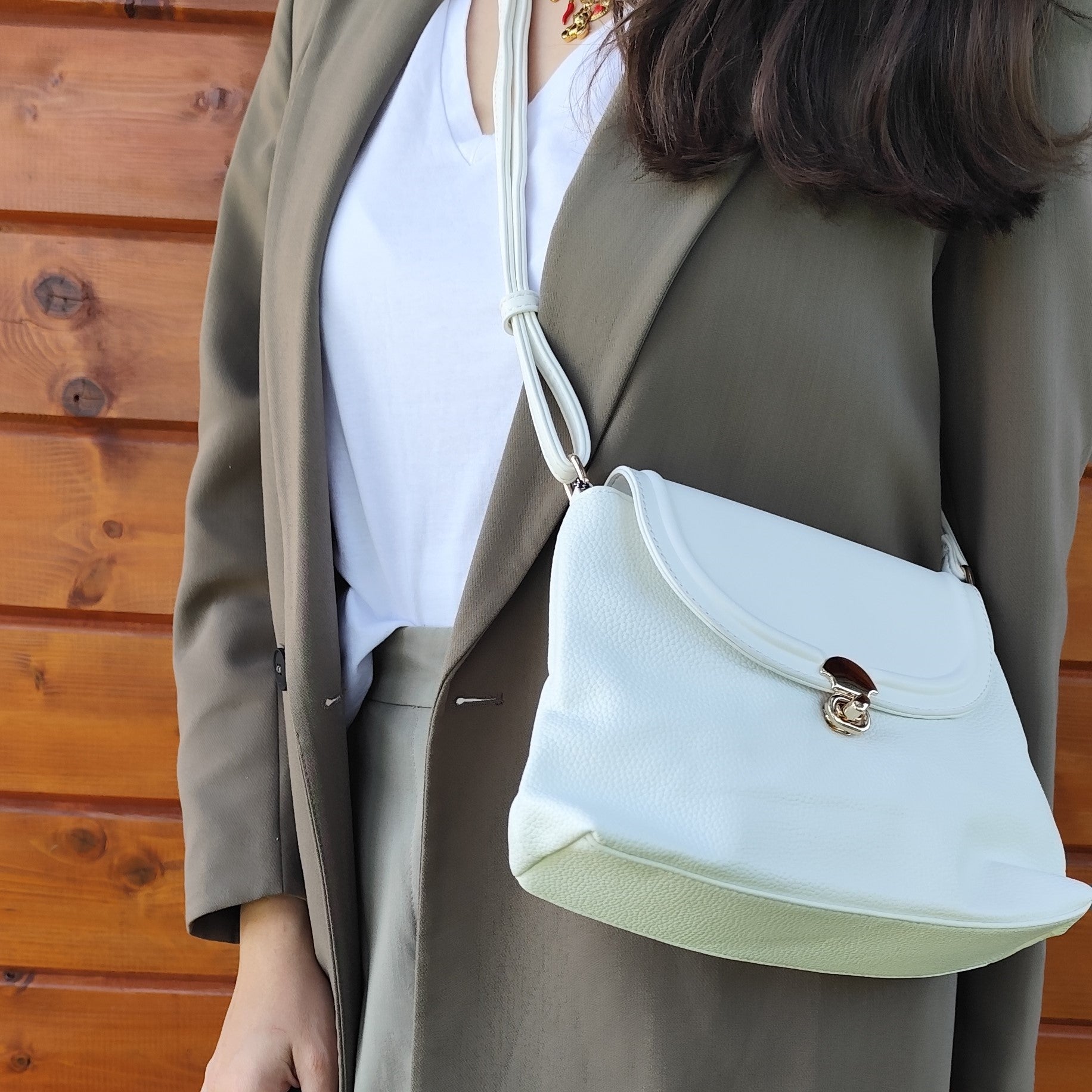 Questa Tracolla White Fresh è realizzata in similpelle, con una pratica chiusura a clip in metallo dorato e cerniera. La tracolla è regolabile per adattarsi alle tue esigenze e l'interno foderato ospita una tasca con chiusura a zip per tenere al sicuro i tuoi oggetti personali. Stile e funzionalità in un unico accessorio!